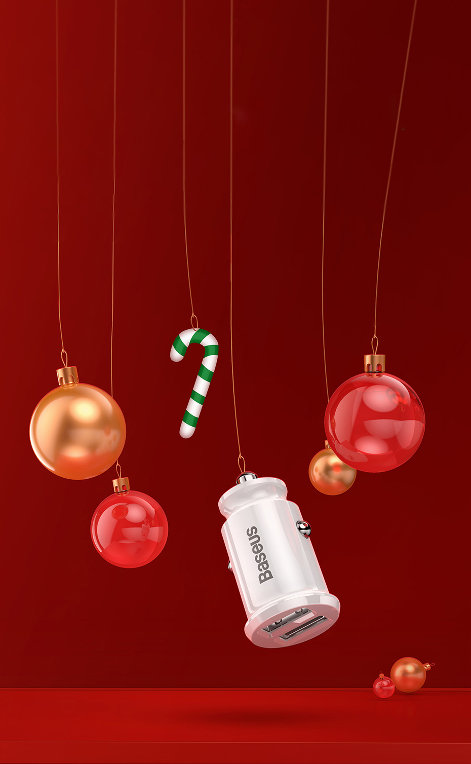 3-in-1 cable, car charger, gravitational dashboard holder, scent, gift packaging
