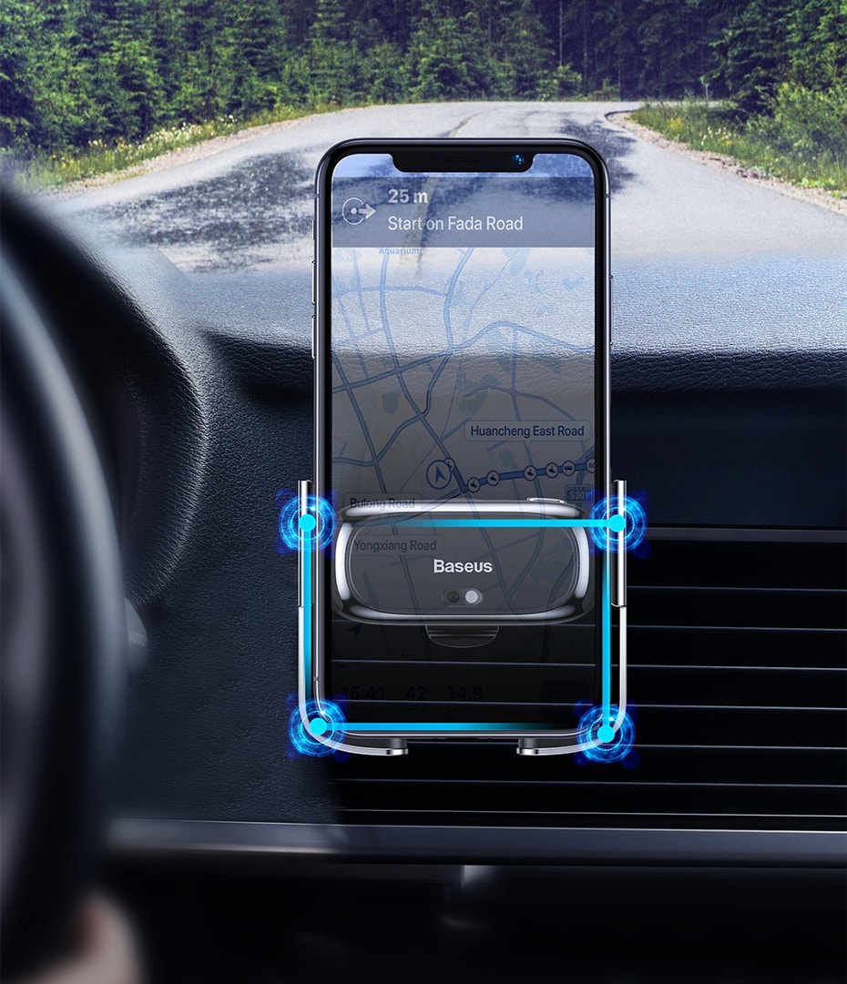 The new electric Baseus holder is lightweight and compact. Its small size does not block the airflow. It blends perfectly into the interior of any car.
