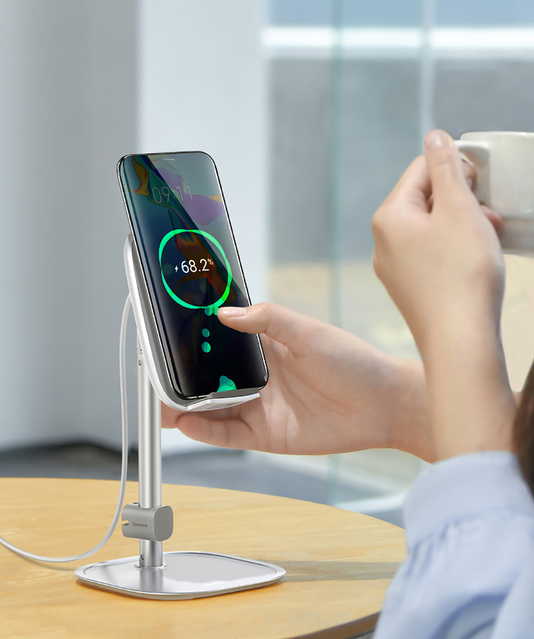 Nowadays we more and more often watch movies and series on smartphones or tablets. Often we don't maintain the correct posture, tanning and holding the device in our hands for many hours - as a result we struggle with neck, back or hand aches. The new phone rack with a 15 W Baseus cordless charger is an ideal solution for similar problems. With its help you can conveniently watch your favorite TV show, play a game and charge your smartphone!
