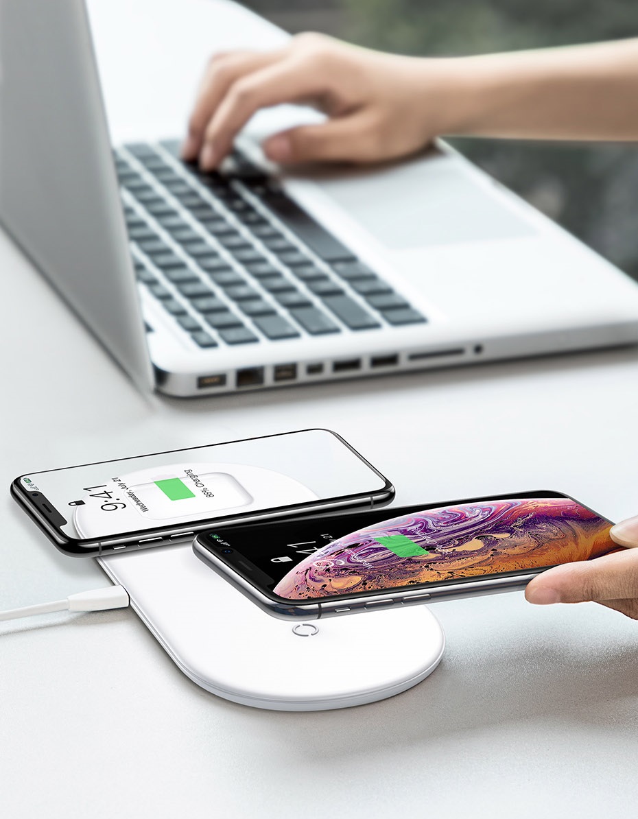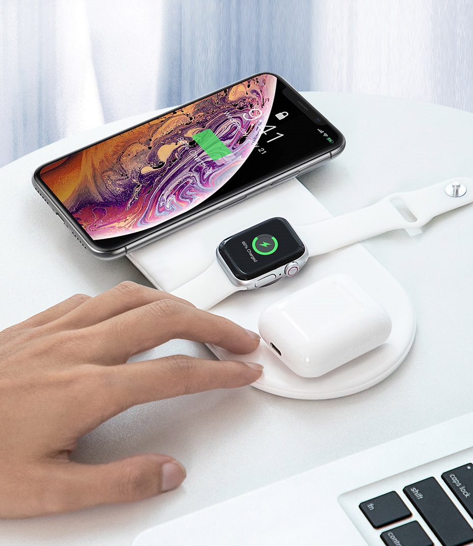 The Baseus Wireless Charger allows you to charge your smartphone, Apple Watch, and Apple AirPods or a second smartphone simultaneously. All at the same time and without the need for any cable! The Baseus Battery Charger is made of high-quality materials and is pleasant to the touch.