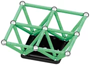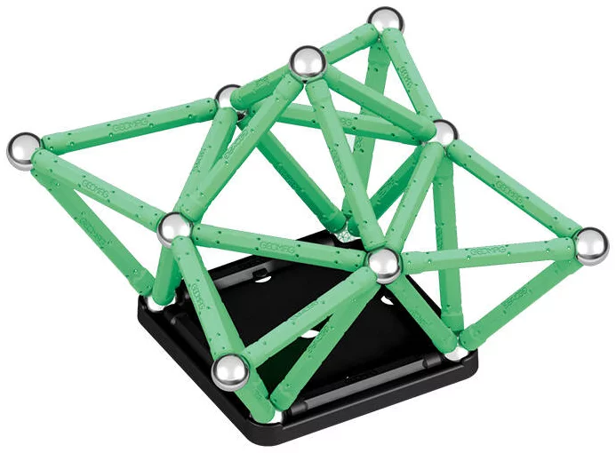 Sada Geomag Glow Recycled s až 60 prvkami ponúka takmer neobmedzené možnosti vytvárania stavieb, ktoré možno stavať a upravovať, zabávať a učiť zároveň. Navyše boli na výrobu magnetických tyčiniek použité prírodné látky svietiace v tme, čo zaručuje skvelú zábavu a úžasné efekty vo dne aj v noci.