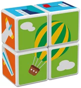 Magicube Printed Transport ponúka nielen stavebnú zábavu, ale stimuluje aj kreatívne myslenie. Pomocou priloženej sady kariet môžu deti vytvárať vzory a usporadúvať farebné obrázky dopravných prostriedkov.