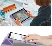 Vďaka krytu v tvare harmoniky na prednej strane puzdra získame ochranu displeja a vďaka technológii prebudenia a uspania zariadenia môžeme zabezpečiť o niečo dlhšiu výdrž batérie. Puzdro môže slúžiť aj ako stojan na pohodlnejšie používanie zariadenia.