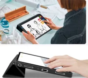 SmartCase nie je len o ochrane, ale aj o funkčnosti. Puzdro sa dá ľahko premeniť na praktický stojan, ktorý umožňuje pohodlné používanie zariadenia v rôznych konfiguráciách - či už vo zvislej polohe, ktorá je ideálna na videokonferencie alebo sledovanie filmov, alebo v horizontálnej polohe, ktorá je ideálna na písanie, kreslenie alebo prácu so stylusom.