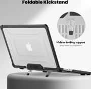 Integrovaný skladací stojan umožňuje ergonomické umiestnenie notebooku, čo zaručuje pohodlie pri každodennej práci. Puzdro je vybavené presnými výrezmi, ktoré umožňujú používateľovi úplný prístup ku všetkým portom a funkciám zariadenia. Vďaka tenkému dizajnu sa puzdro ľahko prenáša a je ideálne do kancelárie aj na cesty.