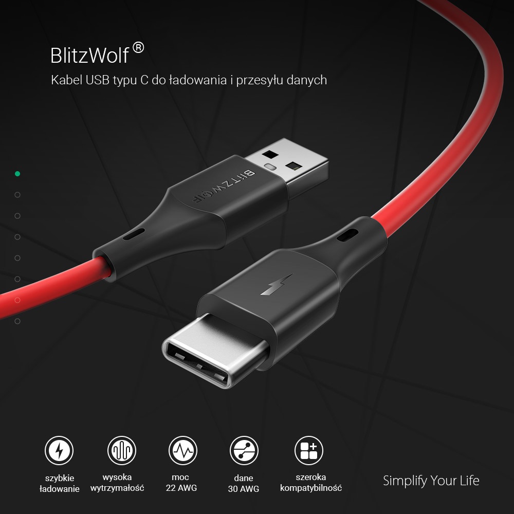 USB-C cable BlitzWolf BW-TC14 3A 1m (black) (5907489600606)