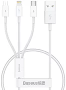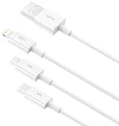 Jeden kábel na nabíjanie všetkých zariadení bez ohľadu na konektor, ktorý podporujú? Prečo nie! Baseus Superior Data ponúka až 3 konektory - Micro USB, Lightning a USB-C, čím poskytuje kompatibilitu, akú ste ešte nepoznali! Nabíjací prúd 3,5 A, prenosová rýchlosť 480 Mb/s a zosilnená konštrukcia - vďaka tomu všetkému si kábel Superior zamilujete!