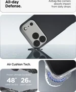 Puzdro je v rohoch vybavené technológiou Air Cushion, ktorá ďalej zvyšuje odolnosť proti nárazom pri páde. Zvýšené okraje chránia obrazovku a objektívy fotoaparátu, zatiaľ čo presné výrezy poskytujú jednoduchý prístup ku všetkým portom a tlačidlám.