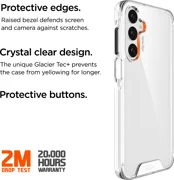Ochrana proti páduPuzdro Eiger Glacier bolo navrhnuté a testované tak, aby vydržalo pád z výšky 2 m, a zvýšené okraje rámčeka pomáhajú chrániť váš displej.Krištáľovo čistá ochranaJedinečná technológia Glacier Tec+ zabraňuje dlhšiemu žltnutiu puzdra a chráni zariadenie pred poškriabaním. Spolu s nezávislým bu