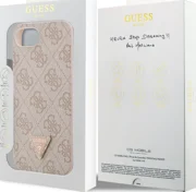 Prémiový zadní kryt Guess PU 4G Strass Triangle Metal Logo se vyznačuje elegantním, charakteristickým 4G vzorem, doplněným o zlaté triangle logo GUESS.