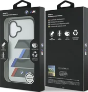 Na zadnej strane jevýrazný motív BMW M - geometrický dizajn spolopriehľadné pruhy vo farbách M (modrá, námornícka a červená) aLogo BMW M zdôraznenie pravosti výrobku.