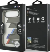 Na zadnej strane jevýrazný motív BMW M - geometrický vzor spolopriehľadné pruhy vo farbách M (modrá, námornícka a červená) aLogo BMW M zdôrazňovanie autenticity výrobku.