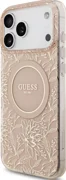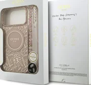 Guess IML Flowers Electro Pearl púzdro MagSafe s remienkom pre iPhone 17 Pro Max ružové (GUHMP17XHCPOFPP)