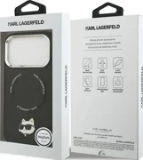 Zadnú stranu zdobí výraznýkovový špendlík Choupette, čo dodáva doplnku jedinečný módny charakter. Celý dizajn je doplnenýhliníkový rám fotoaparátu a postranné tlačidlá striebornej farby, čím sa zdôrazňuje luxusný charakter výrobku. Prsteň MagSafe je vybavený"KARL LAGERFELD" nápis, ktorý dodáva eleganciu a výnimočný štýl.