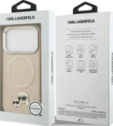 Zadnú stranu zdobí charakteristickýkovová spona s Karlom Lagerfeldom a jeho mačkou Choupette, čo dodáva doplnku jedinečný módny charakter. Celok je doplnenýhliníkový rám fotoaparátu a strieborné bočné tlačidlá, čím sa zdôrazňuje luxusný charakter výrobku. Na krúžku MagSafe sa nachádzaNápis "KARL LAGERFELD", čo dodáva eleganciu a jedinečný štýl.