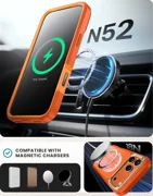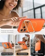 Puzdro je plne kompatibilné s technológiou MagSafe - vďaka zabudovanému magnetickému krúžku poskytuje rýchle nabíjanie a stabilné pripevnenie k príslušenstvu MagSafe. Navyše je vedľa modulu fotoaparátu integrovaný stojan, ktorý umožňuje pohodlné umiestnenie telefónu v horizontálnej polohe - ideálne na sledovanie filmov alebo videohovory.