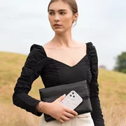 - Tenké hybridné puzdro vyrobené z kombinácie pružného polyuretánu (hrany) a tvrdého polykarbonátu (zadná časť puzdra)