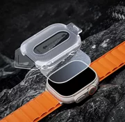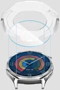 3) Priložte montážny rám so sklom k obrazovke hodiniek - sklo bude dokonale vycentrované. Odstráňte ochrannú fóliu z hornej časti skla a potom prstom stlačte sklo v strede obrazovky, aby sa začal proces priľnutia.