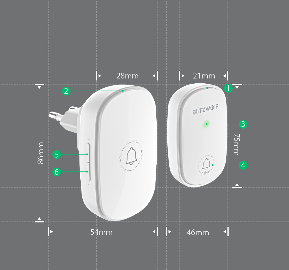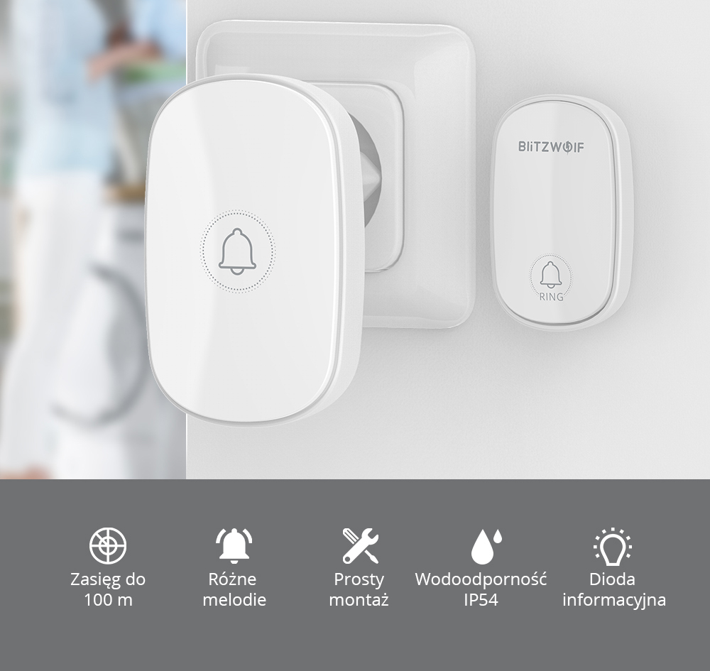 Equip your house, apartment with a bell without unnecessary cables or batteries. The bell is wireless so installation is quick and easy.
