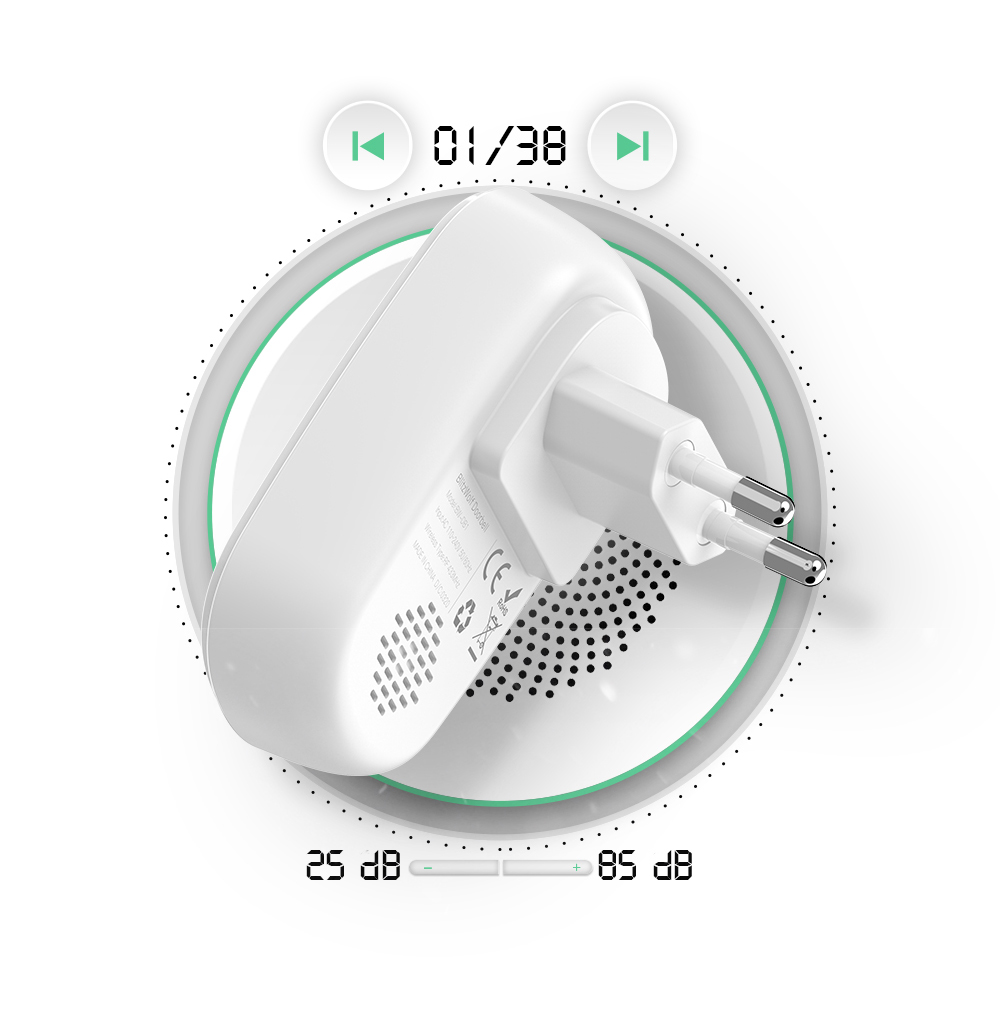 The bell has 38 different melodies stored in its memory, so it will surely suit every taste. There are 4 different volume levels from 25 dB to 85 dB.