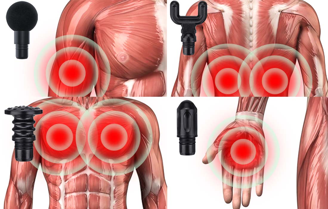 Masér má až 4 vymeniteľné hlavy, takže ich môžete upraviť podľa vašich potrieb a miesta, ktoré chcete masírovať.
