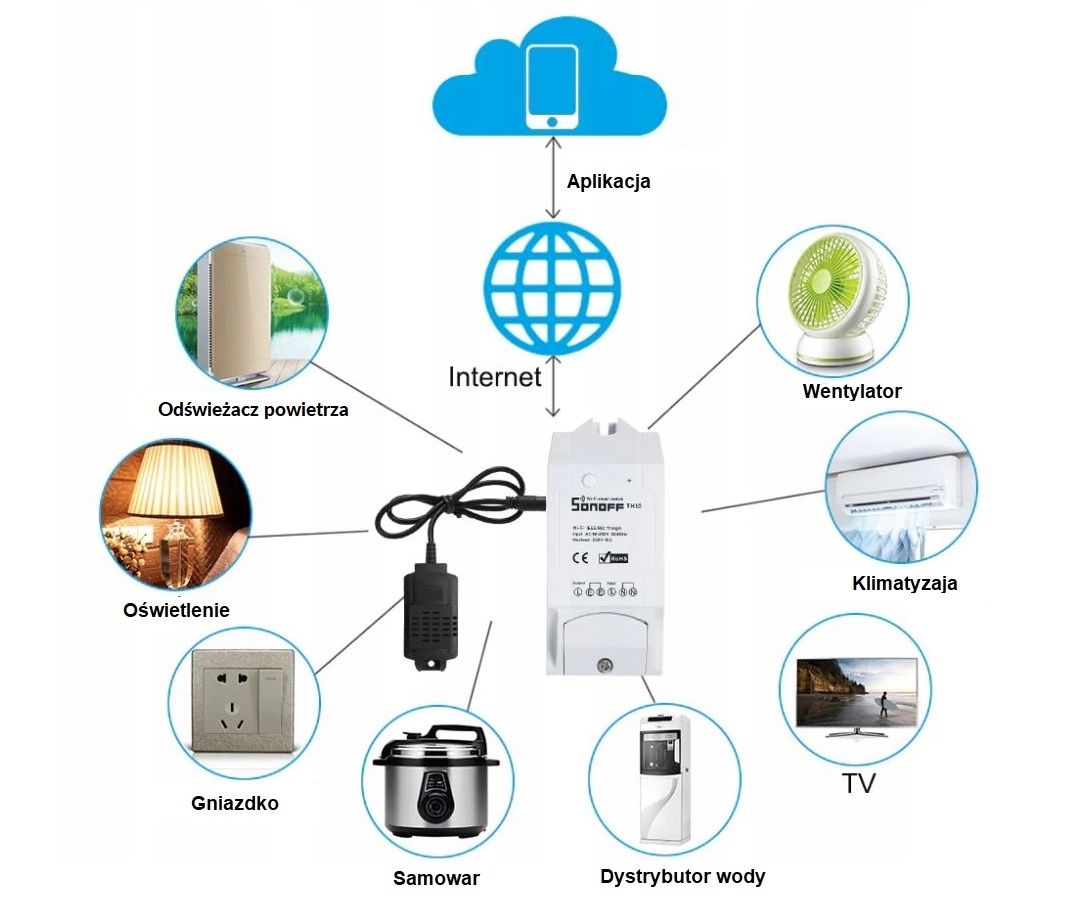 The switch is controlled by means of eWeLink application available for IOS and Android systems. The application allows you to check the data sent by the device in real time directly to the screen of our smartphone. Thanks to this we can keep track of what is happening in a given room in our home, office or any other place where it will be installed and adjust the operation of devices connected to the TH16 switch. It works with the software Amazon Ech, Google Home, and after changing the software also SUPLA system