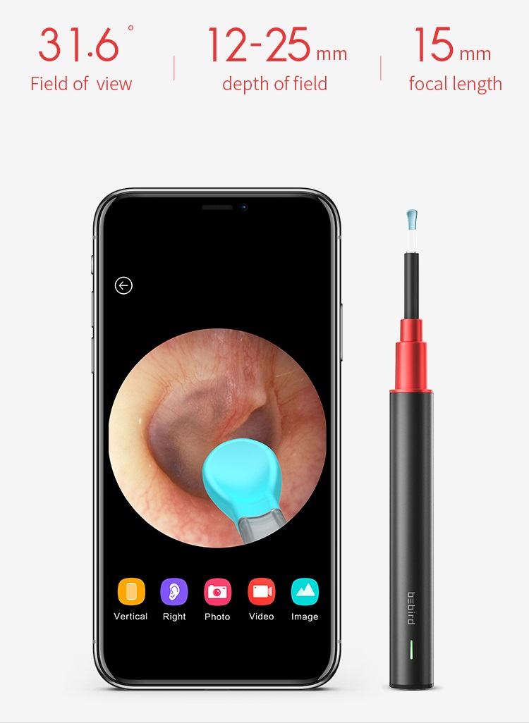 Progressive HD camera technology has a resolution of 5 Megapixels. Thanks to the aforementioned LEDs the view from the camera is clear and extremely accurate. You will see all possible microparticles in your ear and then effectively pull them out. The device also uses a professional fog and dust protection system, ensuring image clarity. The intelligent 4-axis directional gyroscope sends an incredibly fast transmission of 100 Hz. The focal point can examine the ear at a length of 15 mm and a surface depth of 12 to 25 mm. The field of view expands up to an angle of 31.6 degrees. Actually, the camera is so robust that it can even be used as a portable mini microscope.