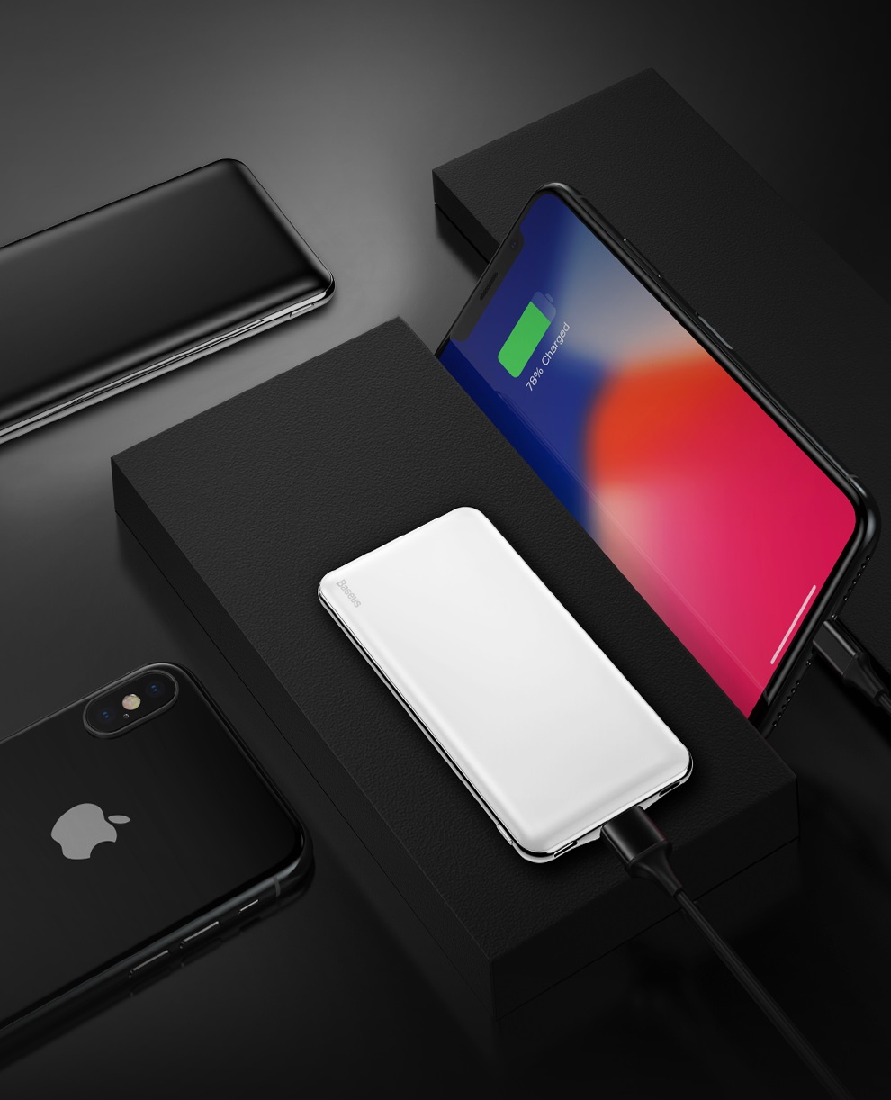 With its extremely thin design, Power Bank Baseus is very comfortable to use and much lighter than a common smartphone.