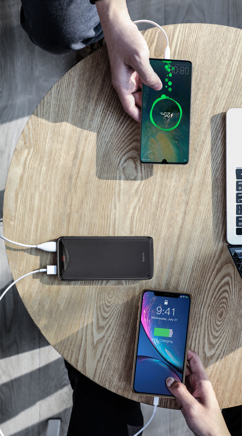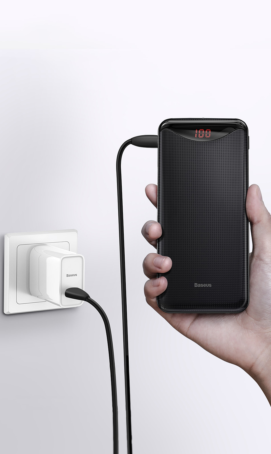The excellent quality power bank Baseus has a capacity of 10000mAh, a built-in flashlight, and an intelligent chip that protects the devices it charges from damage caused by overvoltage or overcurrent and overheating. It is extremely lightweight because it weighs only 225 grams and you can always carry it with you. It can even fit in a very small bag or backpack.