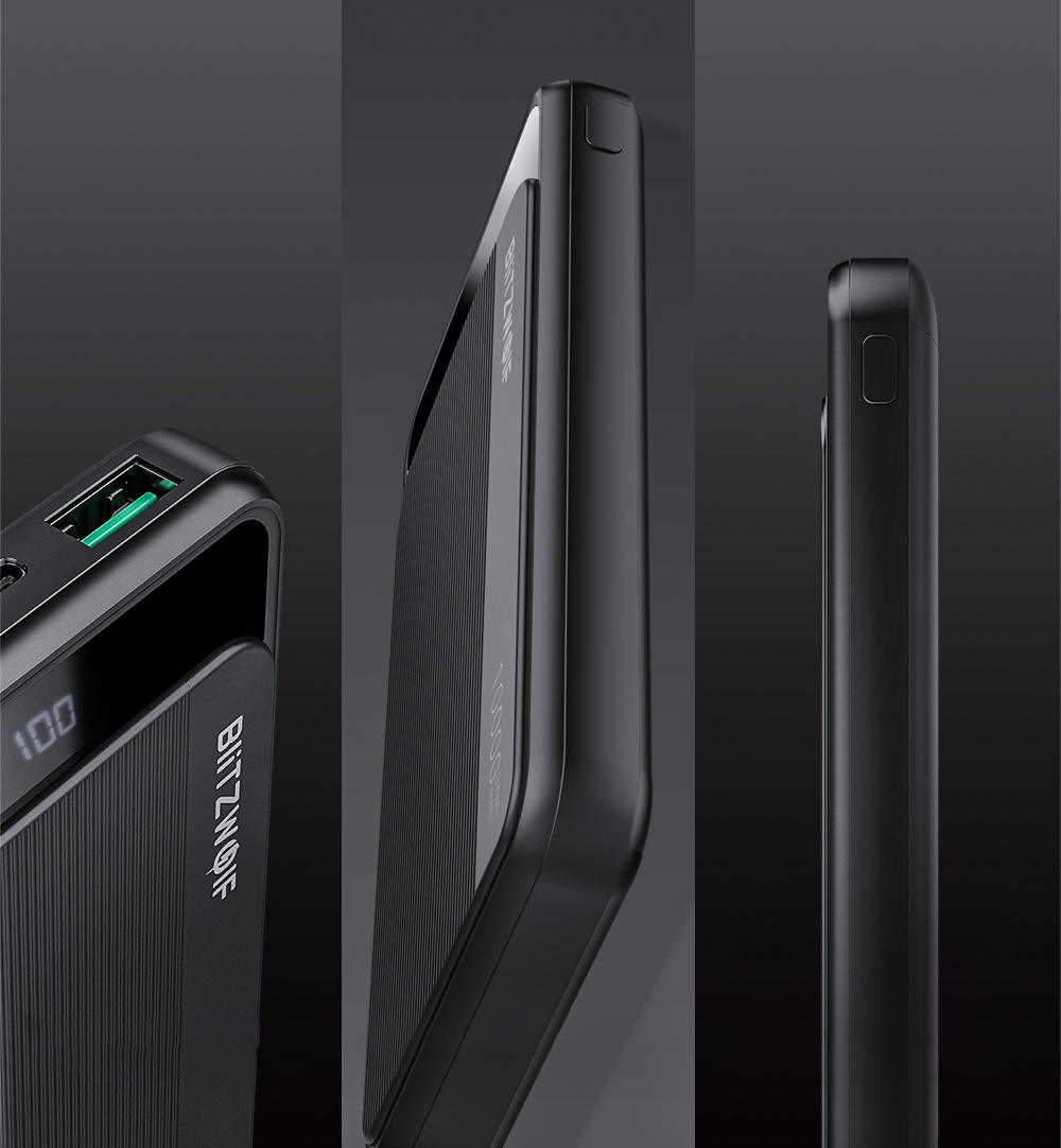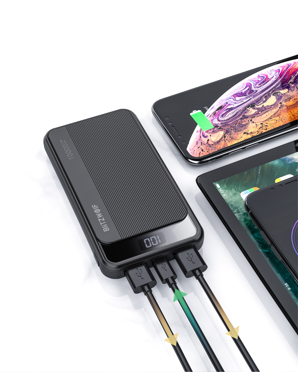 The large Blitzwolf powerbank with a capacity of 10,000 mAh allows for simultaneous connection of several devices with a Type C USB connector and standard USB. It supports the fast charging technology PD and QC 3.0. It is equipped with an LED display, which notifies about the level of charge of the powerbank.
