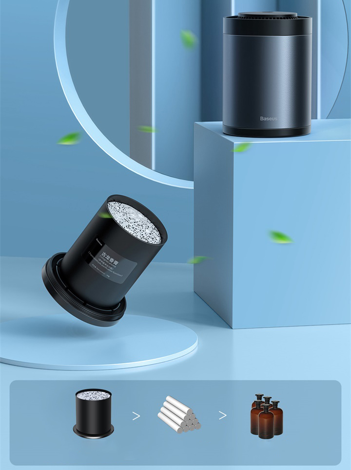 The Baseus Ripple air freshener removes Formaldehyde and leaves a long-lasting scent. It is completely safe for pregnant women and children.