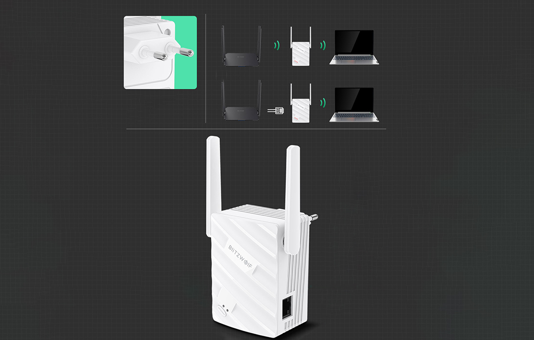 Dead zones of WiFi and annoying connection losses will no longer be your problem. Thanks to the practical Blitzwolf device you will strengthen the signal and provide yourself with an extremely strong range throughout your home. The dual range offers speeds of up to 300 MB/s for 2.4 G and up to 867 MB/s for 5 G.