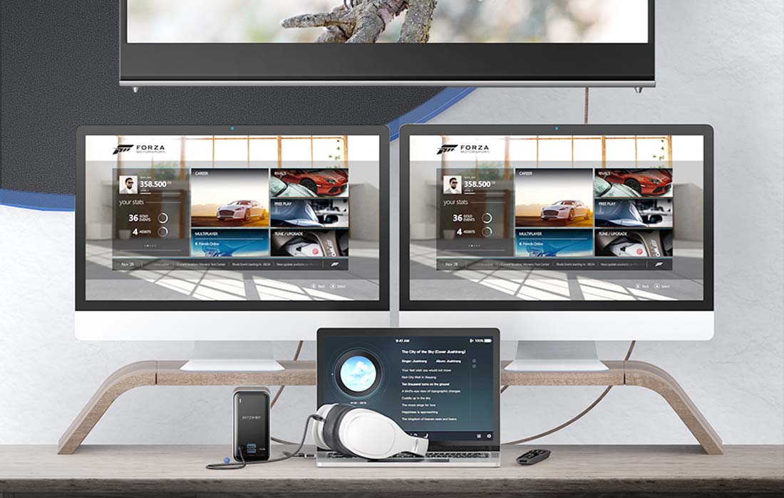 S trojitým displejom si môžete vychutnať krištáľovo čisté a živé farby na obrazovke v kvalite 4K. Pripojte ďalšie dva monitory a súčasne môžete počúvať hudbu a prácu.