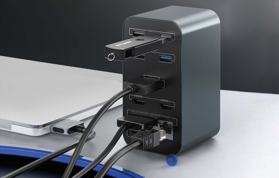 Dokovacia stanica má vstup PD 3.0 a podporuje štandard Power Delivery, ktorý umožňuje nabíjať nielen malé zariadenia, ako je váš mobilný telefón, ale aj prenosný počítač čo najrýchlejšie. Vďaka zvýšenej úrovni výkonu až do 100 W sa už nemusíte obávať, že batéria vyčerpá. Okrem toho má systém napájania inteligentnú funkciu, ktorá automaticky vyberá maximálne možné napätie pre zariadenie, takže sa nemusíte obávať skratu.